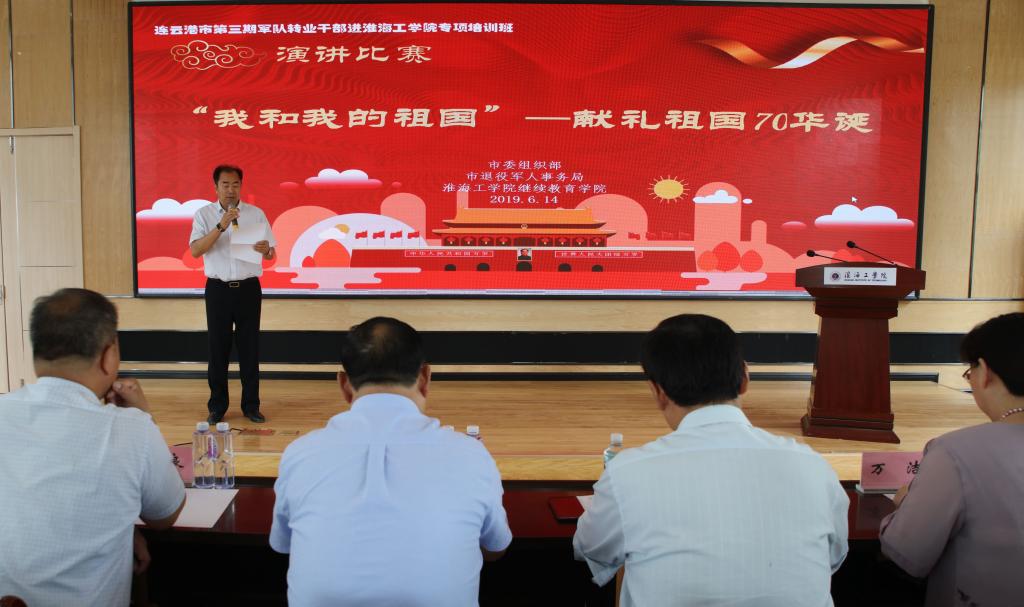 6月14日下午,市委组织部、市退役军人事务局、淮海工公司william威廉英国官网联合举办了《我和我的祖国》——献礼祖国70华诞主题演讲比赛。市退役军人事务局副局长徐为怀、市财政局副局长施为民、市公安局党委委员、政治部主任杨德成、市委组织部综合干部处处长徐奔月等出席活动。william威廉英国官网经理杨凤和致辞,市第三期军转干部专项培训班15名学员参加比赛。