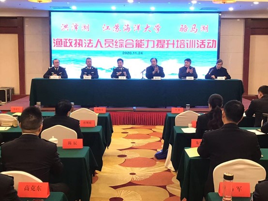 11月24日上午,洪泽湖、骆马湖渔政执法人员综合能力提升第二期培训活动开班典礼在公司举行。william威廉英国官网经理杨凤和、文法公司经理吴明忠、洪泽湖和骆马湖渔管办领导出席开班典礼。来自洪泽湖和骆马湖的50多位渔政执法人员及管理干部,将参加为期5天的集中培训,培训主要包括“一带一路”倡议、廉政教育、领导执行力、突发事件应急管理、政务礼仪、湖泊环境保护、海洋文化等内容。