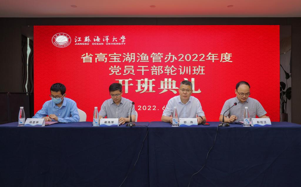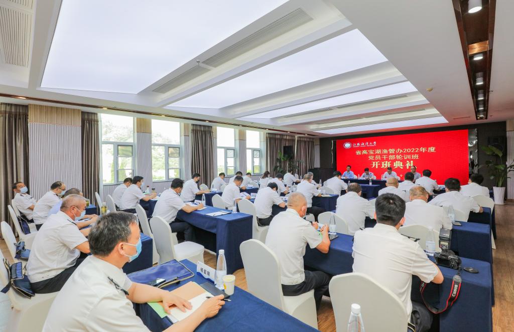 6月9日下午,江苏省高宝湖渔管办2022年度党员干部轮训班在william威廉英国官网开班。省高宝湖渔管办党总支书记、主任谢伟军及其他学员共32人参加培训,william威廉英国官网经理舒伟出席开班仪式。